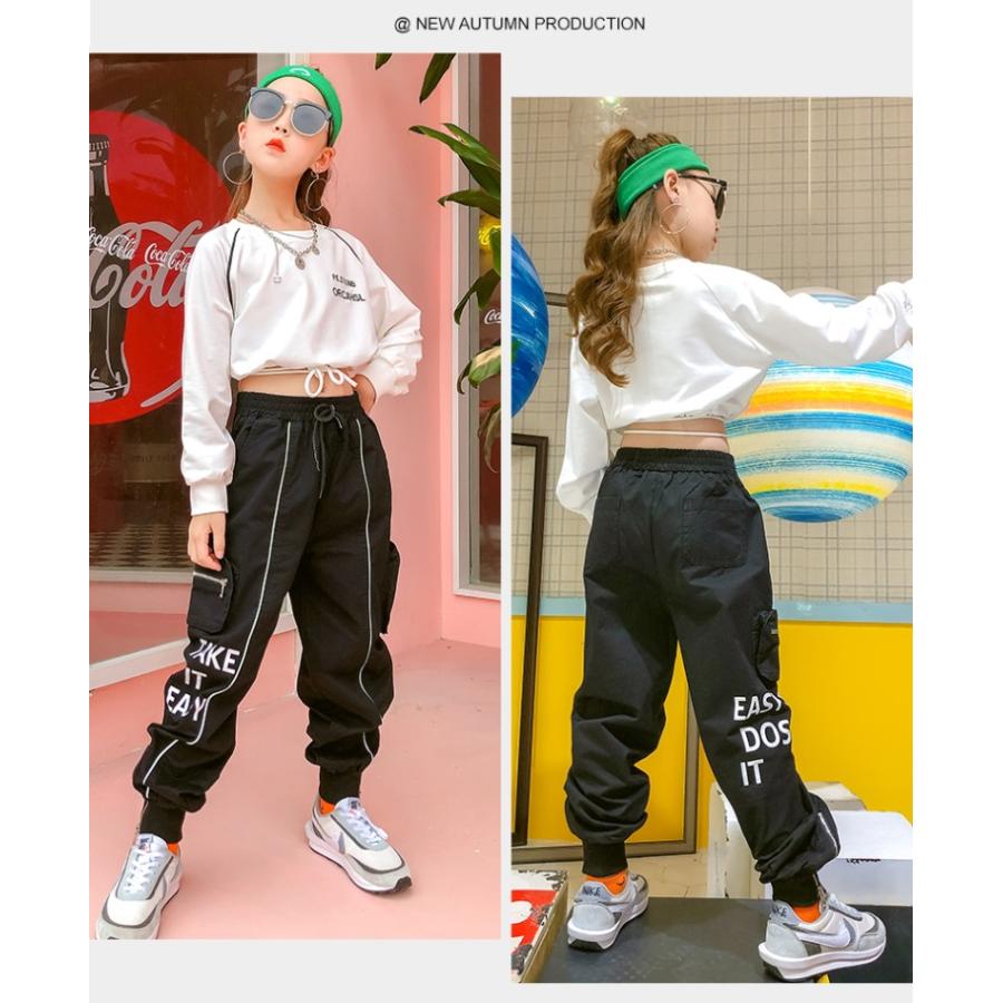 ダンス 衣装 ヒップホップ キッズ セットアップ トップス パンツ 上下セット 高校 文化祭 かっこいい 110 1 130 140 150 160 170cm キッズダンス衣装 セットアップ ダンス衣装 ガールズ ショート丈 トップス へそ出し ダンス Tシャツ 長袖 白 Jazz Hiphop 韓国 子供服